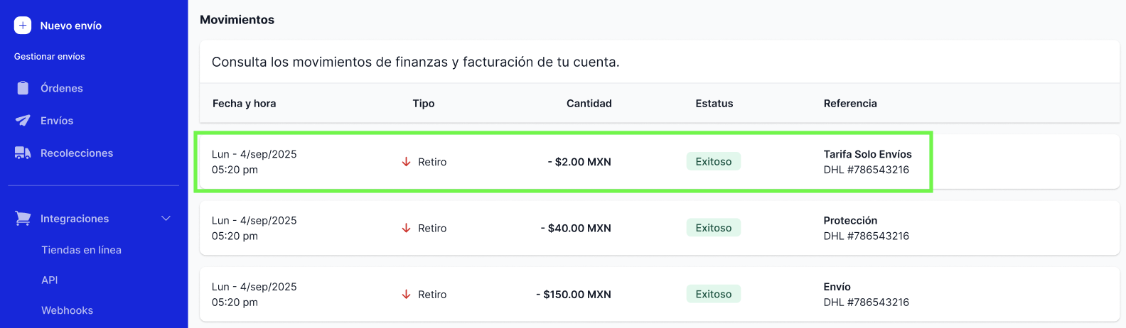 Te aconsejamos que una vez que tu guía haya sido creada, levantes un reporte de tu envío desde plataforma.